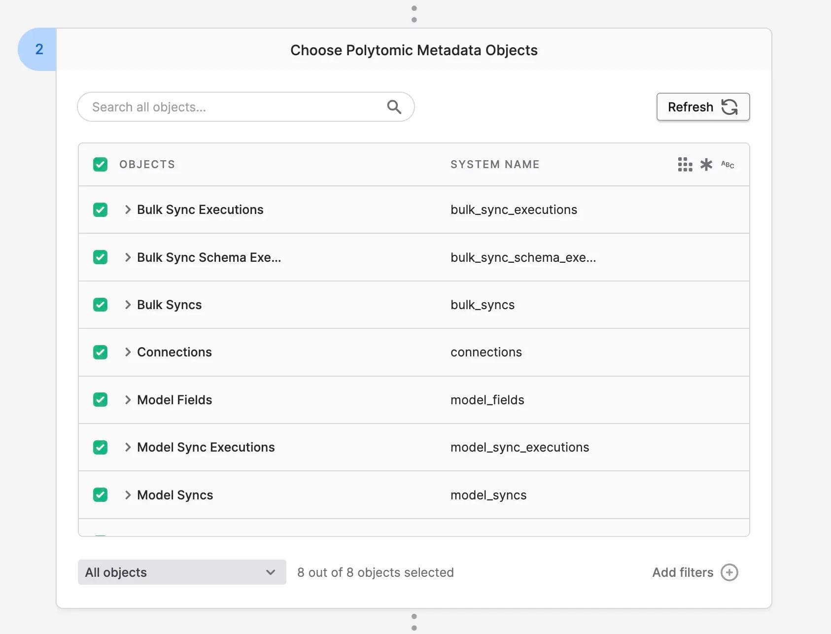 See our documentation for details and table descriptions: https://docs.polytomic.com/docs/polytomic-metadata.